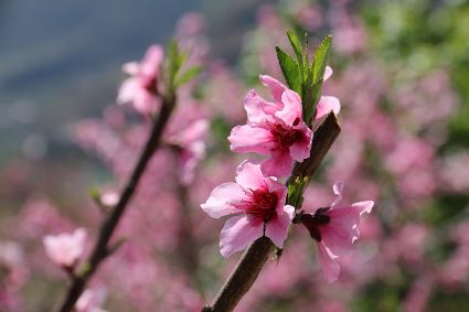 在瀘定縣冷磧鎮(zhèn)、德威鎮(zhèn)等地,桃花、油菜花及櫻花競相開放,一團團、一簇簇,綴滿枝頭,藍(lán)天、白云與各色花兒相交,金黃花海在微風(fēng)中起伏。一畦畦油菜花田錯落有致、層次分明,綿延不斷?!岸聶鸦ㄩ_,三月桃花盛,四月紅櫻桃,五月水蜜桃?!背擞筒嘶?,每年陽春三月,瀘定的桃花也隨著和煦春風(fēng)落滿枝頭滿樹的花芽沁著香氣,一點點溢到空氣中,香了春風(fēng),也香了整座城。