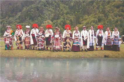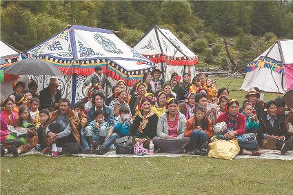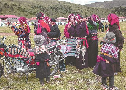 人生的舞步難免有陡峭和漫長,難免有情愛和遺恨,每一步跳動,都把回憶和驚醒呼喚,每一句唱詞都足以溫暖人心。天地廣闊,還有什么比這舒心達(dá)意的鍋莊舞步和傾吐心聲的對唱來得動人?木雅人站立成行,紅纓帽的熾熱,金寶盤銀呷烏的妝扮,是歷史的格言在身上鐫刻的印跡,是民族的希望和自豪的展現(xiàn),也是木雅人深埋地下的根!