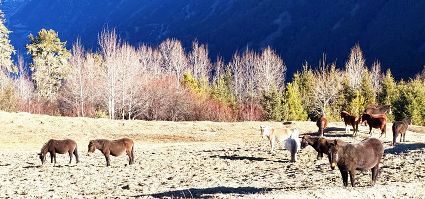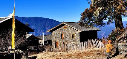 洛克所經(jīng)過(guò)的地方就是三巖龍鄉(xiāng)的猛董,這是一處鮮為人知的隱世天堂。猛董有“五絕”,即“山、湖、谷、寨、寺”,山是被當(dāng)?shù)厝诵欧顬樯裆降柠湹刎暩拢湹兀卣Z(yǔ)為珍珠),湖是神山腳下的麥地措(珍珠湖),谷是雅礱江谷地的藍(lán)月山谷,寨是猛董“后花園”的普米寨子,寺是修建于明清時(shí)期的猛董古寺。