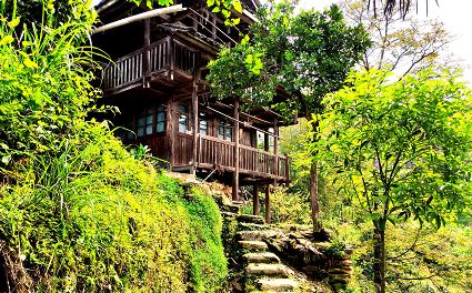 一眼的山,一眼的綠,一眼的云霧,一眼的煙雨,從吊腳樓木格花窗亮麗妖嬈走出來。經(jīng)過吊腳樓的旅人,不經(jīng)意就會站成一棵長腳的樹。