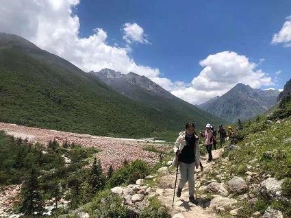 徒步過(guò)程中,可以看見(jiàn)貢嘎衛(wèi)峰五色山系,沿途還能看見(jiàn)各種高山植物。雖是為看紅石灘,但看到的不僅僅是紅石灘的美,雪山、河流、草原、瀑布、冰川……一路美景逐一呈現(xiàn)。