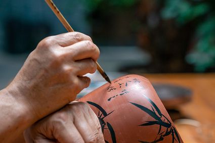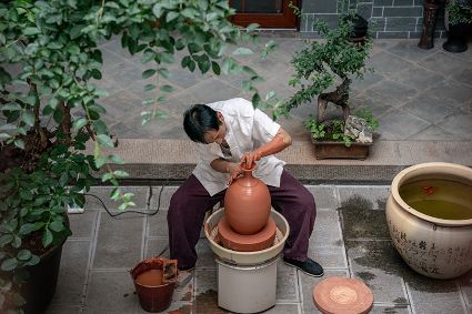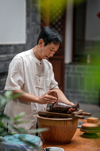 生活在云南省紅河哈尼族彝族自治州建水縣碗窯村的徐榮洪是當?shù)匦旒腋G的第五代制陶藝人,也是非遺建水紫陶燒制技藝的傳承人。 泥料制備、拉坯造型、濕坯裝飾、雕刻填泥、高溫燒制、無釉磨光……要想做出精良的紫陶工藝品,每個流程都需要潛心鉆研?!爸谱骷妓嚟h(huán)環(huán)相扣,某一道工序出現(xiàn)紕漏,燒出來就是瑕疵品。” 徐榮洪拿起刻刀,對陶坯表面開始進行雕刻。 今年57歲的徐榮洪小時候就跟著長輩上山挖陶泥,多年來堅持鉆研建水紫陶的制作技藝。 徐榮洪介紹說,作為紫陶藝人,以陶為紙,根據(jù)器型將不同的文化與藝術(shù)形式注入其中,使其具有無限活力。非遺文化閃爍著人類智慧的光芒,也承載著人們心底的情思鄉(xiāng)愁。