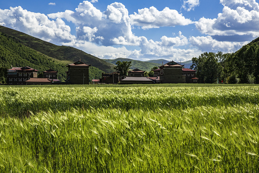 然后行走在山水之間,擁抱大自然,尋找屬于自己的“詩(shī)和遠(yuǎn)方”。油綠的青稞、小麥,散發(fā)出濃郁的田園風(fēng)味;天邊群山起伏,磅礴的氣勢(shì)瞬間感覺(jué)人在自然面前實(shí)在太渺??;帳篷點(diǎn)綴著開(kāi)滿野花的牧場(chǎng),牦牛哞鳴,一片生機(jī),細(xì)細(xì)體會(huì)牧民“逐水草而居”的生存智慧......