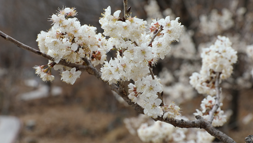 來到浪漫櫻桃谷,遠(yuǎn)遠(yuǎn)望去,那層層疊疊的櫻桃花團(tuán)團(tuán)若絮,裊裊如煙,如一條條白色的玉帶輕繞在山腰傳遞著濃濃的春意,一簇簇雪白的櫻桃花含苞競相綴滿枝頭,爛漫若云。