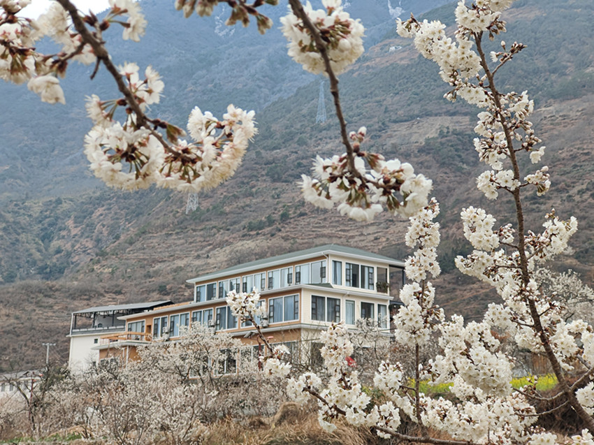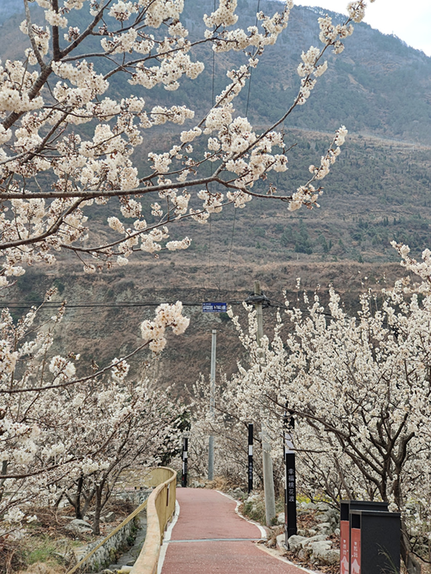 不同于油菜花的燦爛,瀘定縣冷磧鎮(zhèn)千畝櫻桃花,堆雪疊紗、滿山漫白,為整個(gè)山谷的金黃璀璨增添了一道恬謐的寧靜。