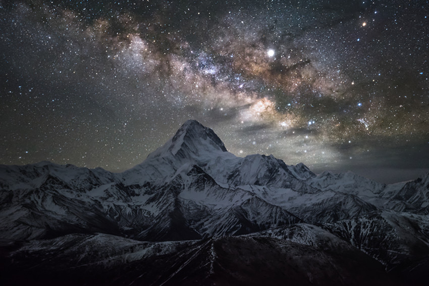 魚子西是新都橋最近的星空攝影基地,這里很容易看到星河。如果趕在黃昏前,抵達魚子西星空宿營地,震撼人心的日照金山和晚霞流云將映入眼前。夕陽西墜,夜幕降臨。漫天星辰與圓月,將光輝灑下地面,涂抹無盡浪漫的色彩。