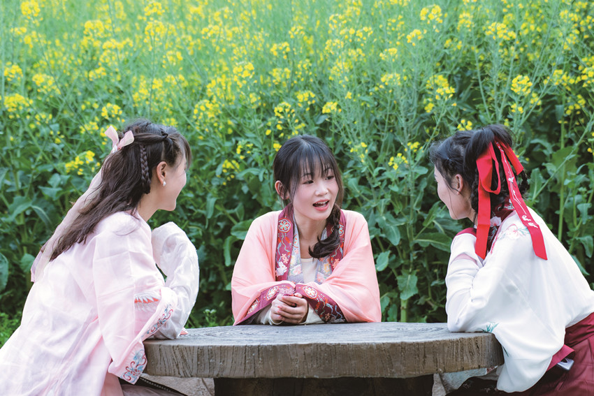 菜花金黃,桃花夭夭,如是農(nóng)莊,比比皆是。單說一處,十年之前,巨石兀立,雜草叢生,其旁一棚,臨道而搭,魯家夫婦,制酸菜魚,遠近遐邇,南來北往,聞香而至,大快朵頤。其后,推石平灘,修籬種花,引水成溪,溪韻農(nóng)莊,聞名遐邇。