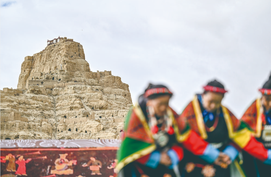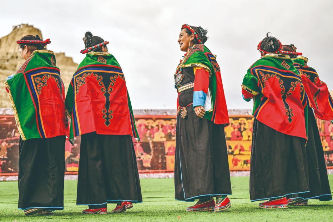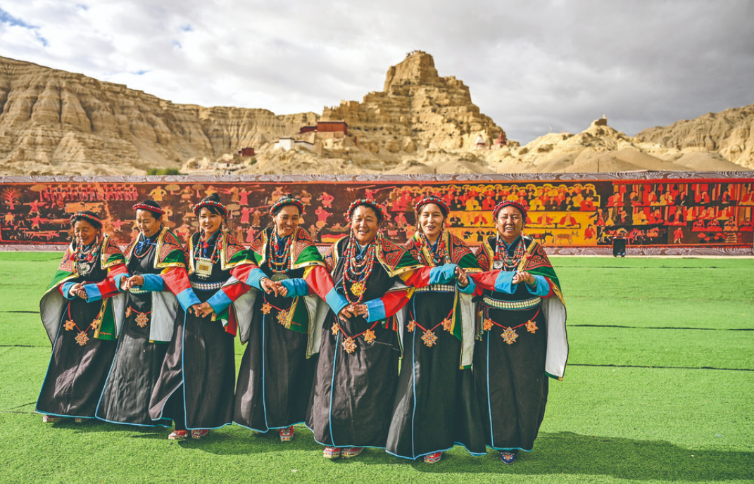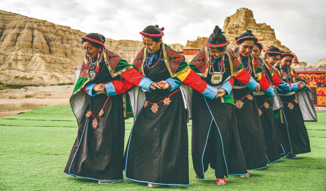 “宣舞”起源于札達(dá)縣,是西藏阿里民間傳統(tǒng)舞蹈?!靶琛比诤喜貞?、舞蹈、說(shuō)唱等主要的藏民族民間藝術(shù),內(nèi)容涵蓋藏民族宗教、禮儀、風(fēng)俗、節(jié)慶等各方面的內(nèi)容。2008年,“宣舞”入選第二批國(guó)家級(jí)非物質(zhì)文化遺產(chǎn)名錄。