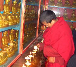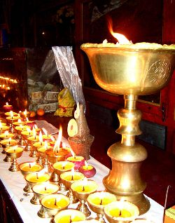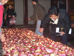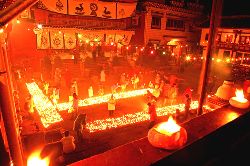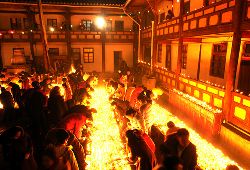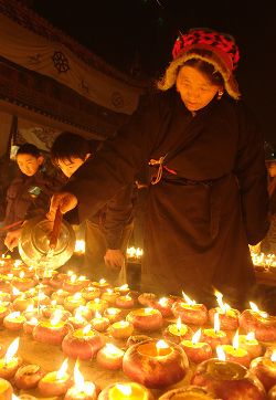 傳說藏歷十月二十五日,是藏傳佛教格魯巴(俗稱黃教)創(chuàng)始人宗喀巴大師圓寂成佛的日子。為了紀(jì)念這位杰出的宗教領(lǐng)袖,藏區(qū)各黃教寺廟和信徒于藏歷十月二十五日,舉行誦經(jīng)、磕頭,燈供儀式等隆重的祭祀活動,祭祀宗喀巴大師在天之靈和祈愿大師賜與善良的人們以吉祥幸福。