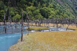 這里森林茂密,河流縱橫,生態(tài)原始,很多古樹浸泡在河水、沼澤之中,姿態(tài)怪異,神秘莫測,猶如置身侏羅紀時代。傳說這里是東巴神話《創(chuàng)世紀》的發(fā)祥地。