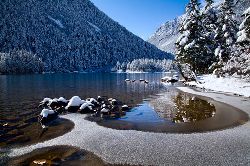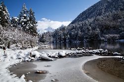 進(jìn)入木格措的冬天就是進(jìn)入了一片美麗的冰雪天地,然而在這里,除了冰雪,還有陽光、沙灘、藍(lán)天處處充滿著浪漫的氣息。早晨,當(dāng)你站在海拔3780米的木格措海子觀景臺前,閉上眼睛細(xì)細(xì)品味雪山后暖暖陽光照射在身上的感覺;工作、生活、煩惱……一切拋在腦后!在景區(qū)的樹上到處是漂亮的冰掛,讓人仿佛一下子進(jìn)入純潔晶瑩的人間仙境;在海子旁自然形成的一大片名為黃金海岸的沙灘,更是給來到這里的人們帶來情海的感受。