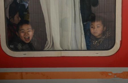 春運(yùn)期間,各地出行的人潮中總能看到隨父母一起踏上返鄉(xiāng)路的孩子們,他們無法體會(huì)到春運(yùn)一票難求、歸程摩肩接踵等帶給大人們的煩惱,掛在臉上的只是或興奮、或好奇的燦爛笑容。新華社發(fā)