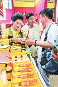 記者在首個公眾開放日當天的甘孜展館看到,我州8個名優(yōu)特色產(chǎn)品的展位前,人流如潮。或購買,或品嘗,或填單訂貨,構成了激動人心的一幕。和絕大多數(shù)觀眾一樣,一走進甘孜展館,美國游客尼爾就對這些名優(yōu)產(chǎn)品贊不絕口,吸引他的不僅有甘孜水淘糌粑、爐霍雪域俄色茶,還有高原名貴藥材制品、高原牦牛肉制品等。