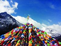 旅程的第七天,翻越雀兒山埡口,海拔5050米。因?yàn)樯礁呗冯U(xiǎn),所以已經(jīng)在開鑿隧道,三年后這里的路將會荒廢,人們也不再從這里經(jīng)過。第一次翻越五千米的高度,心中難免激動,我跑下車,摸了摸被經(jīng)幡圍繞的紀(jì)念碑。我想人生總有很多第一次,以后還會第一次翻越六千、七千米。