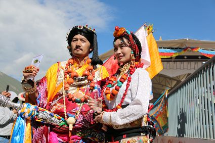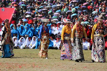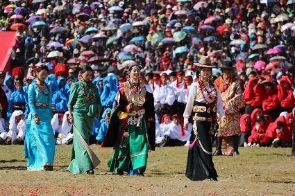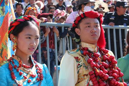 于是,年復(fù)一年,“漢子”與“花”兒們便挺拔、綻放在漢語(yǔ)表達(dá)的一個(gè)極點(diǎn)之上,被玄想,被渴望。對(duì)遠(yuǎn)道而來(lái)的人們或是世代居于高原的子民而言,康巴漢子與康巴之花不僅僅是美的化身,通過(guò)康巴漢子與康巴之花的評(píng)比,人們?cè)趯ふ乙粋€(gè)早已失落卻又天然渾成的世界。