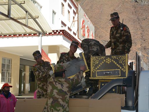 先后深入3縣11個鄉(xiāng)鎮(zhèn)19個村(組)和寺廟,裝卸物資164噸,中轉(zhuǎn)輸送帳篷880余頂,搭建防寒棉帳篷155頂,疏散轉(zhuǎn)移群眾1700余人,搶挖糧食282.3噸,搬運(yùn)家具1080余件(套),轉(zhuǎn)移牲畜163頭,搶救轉(zhuǎn)移被掩埋車輛11臺,拆除危房3間(約230平方米),轉(zhuǎn)運(yùn)建筑木材74立方米,為受災(zāi)群眾及師生保障熱飲熱食達(dá)1500余人次。