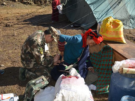 地震發(fā)生僅1小時,總隊政委金德成即帶前指,從雅江翻越海拔4400余米的高爾寺山向塔公方向開進(jìn)。與此同時,應(yīng)急救援分隊分別從康定星夜兼程,疾速奔赴重災(zāi)區(qū)。21時03分,前指抵達(dá)震中塔公鎮(zhèn)奪讓一村和受災(zāi)嚴(yán)重的木雅祖慶小學(xué),深入村寨了解受災(zāi)情況,派出38名應(yīng)急救援官兵,對房屋受損嚴(yán)重的7戶災(zāi)民先期展開救援,搶挖出被倒塌墻體壓埋的車輛2臺。并及時來到康定地震前線指揮部,請領(lǐng)任務(wù)。連夜為木雅祖慶小學(xué)師生搬運(yùn)棉被、搭建帳篷,幫助受災(zāi)師生順利度過震后第一個夜晚。