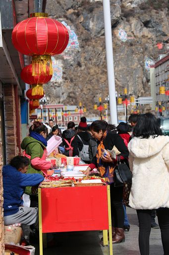 在康定最大的農(nóng)貿(mào)市場——郭達(dá)農(nóng)貿(mào)市場,城鄉(xiāng)群眾正在采購水果、蔬菜,紅紅的對聯(lián)、火火的燈籠,都成了搶手貨。來自災(zāi)區(qū)的扎西專門開了輛五菱宏光來買年貨,他說,今年雖然只能在帳篷里過節(jié),但還是要把吃的用的都備足,好好過一個(gè)喜慶的節(jié)日。在康定民貿(mào)公司、德惠超市,收銀員告訴記者,由于今年各單位都要留一半的人值班、上班,所以人也比往年多,年貨特別好賣。