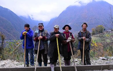 5、瀘定縣磨西鎮(zhèn)柏楊樹村的村民修路間隙。一直以來,這里的村民進(jìn)村的路都是彎來繞去一下雨就坑坑洼洼的土路。村民說,明年春節(jié),他們出村的10余公里水泥路就通了。