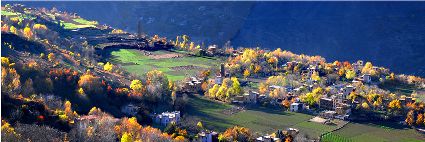 丹巴的秋似乎來得更晚一些,當(dāng)羌塘高原上的雪花從彤云密布的天空中飄灑下來,雅礱江上游滴水已成冰的時(shí)候,那秋才帶著陣陣涼意,伴隨著飄飄蕩蕩的白云,跨過雪域高原,翻過崇山峻嶺,載著五顏六色的夢(mèng)想,悄悄的眷顧上這塊還郁郁蔥蔥的峽谷。就這樣,秋在不經(jīng)意間劃過峽谷兩岸,用自己特有的方式,渲染了所有的景色,漸漸瘦弱了山的肌膚。