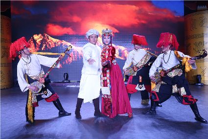初生的音樂劇《康定情歌》是個(gè)聽話謙遜的孩童,專業(yè)人士的諄諄教誨一定會(huì)牢記在心;他也是個(gè)具有思鄉(xiāng)情結(jié)的游子,自己的一顰一笑都流露出濃郁的民族風(fēng)采;同時(shí)他也是個(gè)頑強(qiáng)拼搏的逐夢(mèng)少年,即便汗水和淚水匯成一道道溝壑,依然挺胸不低頭,只為在明天,成為更好的自己。 (圖片由州歌舞團(tuán)提供)