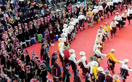 10月26日,2017中國(guó)四川丹巴嘉絨藏族鄉(xiāng)村風(fēng)情節(jié)在巴底鎮(zhèn)開(kāi)幕。本次風(fēng)情節(jié)集古碉藏寨、嘉絨選美、大型鍋莊、民族歌舞、精美服飾、農(nóng)耕體驗(yàn)以及田園觀光等為一體,既是一場(chǎng)風(fēng)情別致的民族文化盛會(huì),也是一場(chǎng)如詩(shī)如畫(huà)的鄉(xiāng)村旅游大餐。30名巴底片區(qū)(聶呷鄉(xiāng)、巴旺鄉(xiāng)、巴底鎮(zhèn))的姑娘們經(jīng)過(guò)形體和才藝展示兩個(gè)環(huán)節(jié),最后評(píng)選出金花1名,銀花2名,石榴花3名。本次活動(dòng)評(píng)選標(biāo)準(zhǔn)總分為10分,29號(hào)選手莫莫以9.85分的優(yōu)異成績(jī)榮獲本次風(fēng)情節(jié)“金花”稱(chēng)號(hào),10號(hào)選手卓瑪和6號(hào)選手孟江榮獲“銀花”稱(chēng)號(hào),28號(hào)選手扎西瑪初、16號(hào)選手仁千以及11號(hào)選手德江初榮獲“石榴花”稱(chēng)號(hào)。 丹巴嘉絨藏族風(fēng)情節(jié)歷史悠久,至少可以追溯到唐宋時(shí)期,最早是人們?yōu)榱藨c祝豐收舉行的慶?;顒?dòng),每當(dāng)夏收或秋收之后的農(nóng)閑期間,人們各自帶著釀制的新酒,聚集在一起,一邊品嘗美酒,一邊跳起鍋莊,盡情歡度豐收之后的閑暇時(shí)光,祛除一年的疲勞辛苦,久而久之便形成一種習(xí)俗沿襲下來(lái),活動(dòng)的規(guī)模越來(lái)越大,內(nèi)容也越來(lái)越豐富?;顒?dòng)內(nèi)容主要包括:品嘗美酒、鍋莊舞蹈演賽、山歌情歌對(duì)唱、評(píng)選美女、民間雜耍等活動(dòng)。據(jù)了解,2017丹巴嘉絨藏族鄉(xiāng)村風(fēng)情節(jié)將持續(xù)至28日,還將在東谷鄉(xiāng)、革什扎鄉(xiāng)、梭坡鄉(xiāng)開(kāi)展一系列豐富多彩、獨(dú)具特色的民俗表演活動(dòng)。