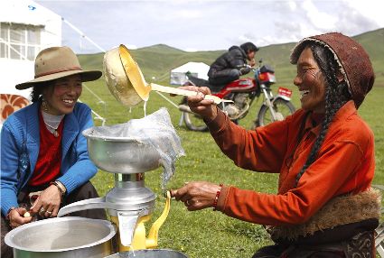 67年來(lái),在黨中央、國(guó)務(wù)院和省委、省政府的關(guān)心關(guān)懷下,在黨的民族政策的光輝照耀下,各民族共同團(tuán)結(jié)進(jìn)步、共同繁榮發(fā)展,甘孜大地發(fā)生了翻天覆地的變化。以機(jī)場(chǎng)、公路為主的交通網(wǎng)絡(luò)正在形成,雅康高速公路即將通車,城市鄉(xiāng)村、藏家村寨舊貌換新顏,甘孜大地處處生機(jī)盎然,各族人民生活比蜜還甜。