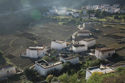 果實滿枝頭、莊稼堆糧倉、新村新貌。金風送爽的十月,走進香巴拉鄉(xiāng)城,隨處可見農牧民群眾脫貧后的喜悅與感動。