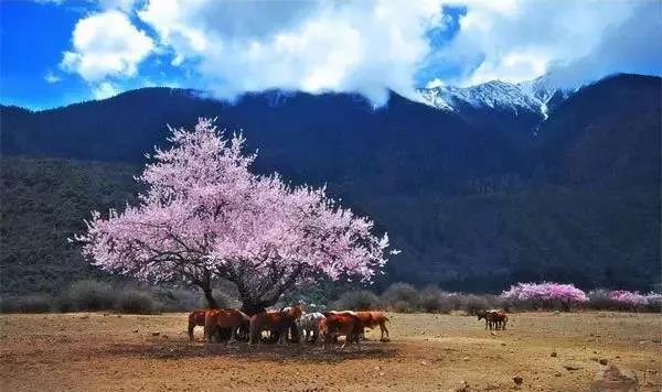 在爐霍,偶爾陽春三月都會下雪,于是也有了這雪壓桃花的美景。