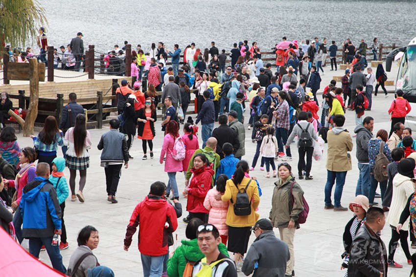 游客蜂涌木格措。本網記者 田杰 攝
