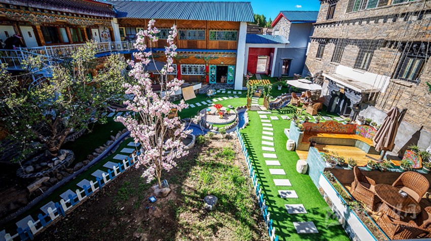 曾經(jīng)的倉庫變成了咖啡廳,關(guān)牛的地方變成了餐廳,土司房變成了溫泉套間,四合院變成了小橋流水,雖然有些改變,但留給客人的依舊是一個(gè)傳統(tǒng)藏式四合院?!拔ㄒ桓淖兊闹皇嵌嗔诵┬氯诵率聛韥硗谶@里從你的全世界路過……”石雅琴借用張嘉佳的《從你的全世界路過》的話語,道出了她對“親愛的宅宅”的“定性”。