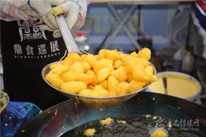 要說美食節(jié)最炫酷的店鋪,那非“印度飛餅”莫屬了。記者穿過層層圍觀的人群,點了一份菠蘿飛餅。只見廚師將捏好的面團(tuán)在案板上揉了幾下,便捏緊面餅一端按順時針方向轉(zhuǎn)動,手里的面餅越轉(zhuǎn)越大,越轉(zhuǎn)越薄,幾近透明,接著就是放餡料,稍做煎炸,切割裝盤,短短一分鐘內(nèi),一氣呵成。記者接過盤,咬下一口,“喀嚓”一聲,再一口就吃到了菠蘿的清香,外層淺黃松脆,內(nèi)層綿軟白皙,略帶甜味,好一個外脆內(nèi)嫩?。〗榔饋韺哟呜S富,一軟一脆,口感對比強烈,嚼過之后,齒頰留芳。當(dāng)脆餅撞上菠蘿的清香,就像在夏天突然掉進(jìn)一個水池,清爽又驚喜?!案杏X就是一件的藝術(shù)品啊!”如此的驚嘆聲從人群中迸發(fā)出來。