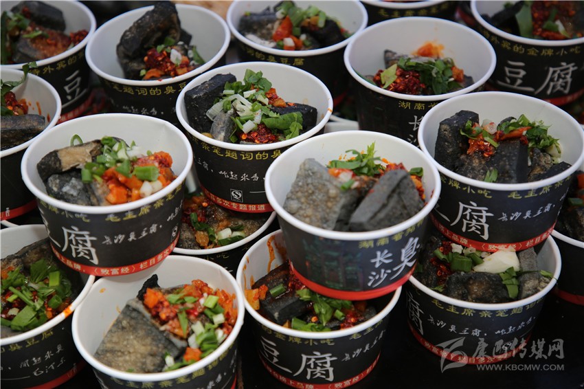 “長沙臭豆腐,毛主席親自點評的長沙臭豆腐……”一陣陣吆喝聲從遠(yuǎn)處傳來,記者心想,臭豆腐,大概還是算長沙的味道最正宗吧。還沒走近,一陣逗人味蕾的氣味便傳進(jìn)了記者的鼻子,記者的口水再也包不住了,便徑直跑向臭豆腐售賣點,一個個臭豆腐堆積如山,正在等待裝盤澆汁。周圍也圍滿了想要一嘗滋味的食客。