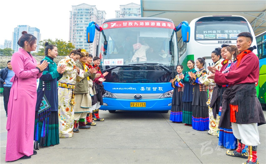 景區(qū)直通車授牌儀式和自駕游車隊(duì)授牌儀式也是本次推介會(huì)的亮點(diǎn)。兩項(xiàng)儀式旨在進(jìn)一步方便廣大游客到九龍旅游,并開(kāi)啟成都直通九龍旅游及運(yùn)輸融合發(fā)展的歷史征程?,F(xiàn)場(chǎng),貼有“穿越藏彝走廊,體驗(yàn)民俗風(fēng)情”和“甘孜九龍旅游直通車”車標(biāo)的汽車引得不少人注目,有的還當(dāng)即向工作人員咨詢票價(jià)、路線。