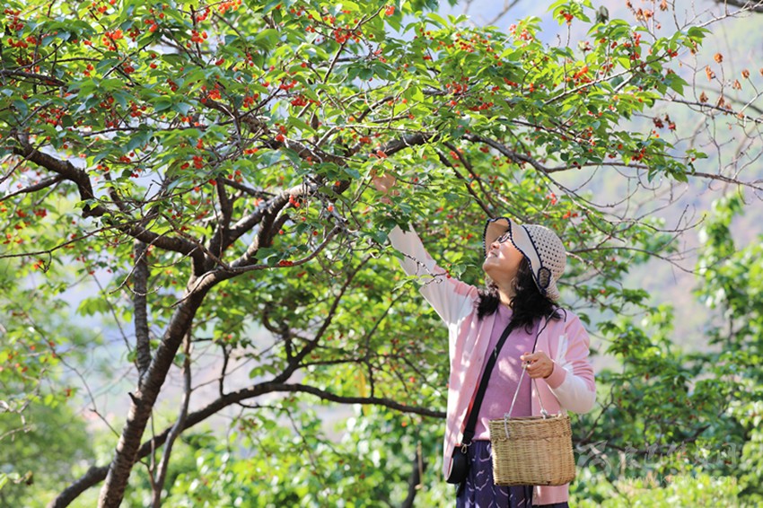 雖然視聽盛宴落下帷幕,但是舌尖狂歡季才剛剛開始。文藝匯演結(jié)束后,大家信步漫游在杵坭村的田間小道上、櫻桃果園中,聽果農(nóng)講述櫻桃知識,體驗采摘樂趣、品嘗紅果甘味,盡情地享受著這歡樂的周末時光。