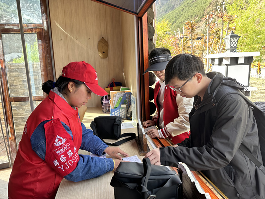 “我們?yōu)橛慰吞峁┞糜巫稍儭⒕€路指引、文明旅游勸導(dǎo)、發(fā)放宣傳折頁(yè)等服務(wù),同時(shí)還幫助游客在手機(jī)App、互聯(lián)網(wǎng)預(yù)訂酒店,規(guī)劃旅游線路,寄存包裹等,讓游客感受到亞丁景區(qū)是有溫度、有人情味的旅游目的地。”“五一”期間稻城亞丁景區(qū)志愿者四郎曲初告訴記者。