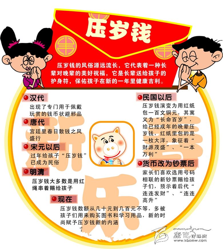民間的習(xí)慣都是守歲守到半夜,即從除夕那天的亥時(shí)至元旦那天的子時(shí)之間開(kāi)始入席,稱之為“分歲酒”。一家人歡歡喜喜地喝完分歲酒之后,長(zhǎng)輩還要給小孩子們分“壓歲錢”。舊時(shí)的風(fēng)俗,壓歲錢規(guī)定一百枚,用紅繩串好,取百年長(zhǎng)壽的意思。當(dāng)然,目前改為給給鈔票,數(shù)