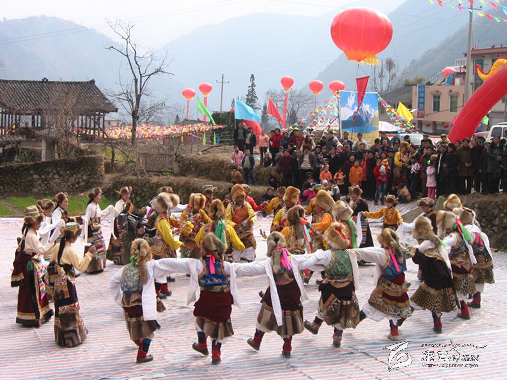 從初二開始,親朋好友才相互拜賀,共慶新年。圍跳鍋莊,“鍋莊”——藏族的民間舞蹈。在節(jié)日或農(nóng)閑時(shí)跳,男女圍成圓圈,自右而左,邊歌邊舞。“果桌”——鍋莊舞,早期與西藏奴隸社會(huì)和盟誓活動(dòng)有關(guān),后來逐步演變成為歌舞結(jié)合,載歌載舞的圓圈歌舞形式了?!肚迨犯?middot;樂志》音譯為“郭莊”,近代有稱“歌莊”,唯《衛(wèi)藏通志》說它是圍著支鍋石樁而舞的意思?!段鞑匚璧父耪f》載:以前的康定一帶,有一種商業(yè)性組織叫“鍋莊”,這類商行收購?fù)廉a(chǎn),代辦轉(zhuǎn)運(yùn)設(shè)有客棧,沿途過往的藏族商賈常聚集宿居其中。晚上,在院內(nèi)曠地壘石支鍋熬茶抓糌粑,茶余飯后不時(shí)圍著火塘歌唱跳舞,以驅(qū)一天的勞累與疲乏,保持旺盛的精力,適應(yīng)惡劣環(huán)境。