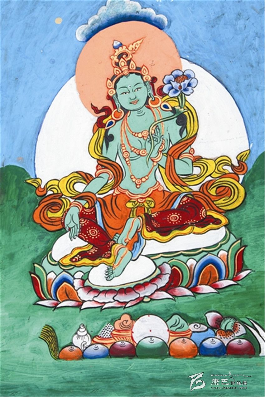 圖案刻制完成后,就要進(jìn)行洗石。以前是用牛糞充當(dāng)洗滌劑進(jìn)行清洗,現(xiàn)在則直接用洗潔精進(jìn)行清洗。清洗完畢后,將石板涼干,就可以上色了。巴德說,彩繪石刻的顏料以前都是從印度進(jìn)口的,現(xiàn)在也開始使用藏畫顏料或廣告顏料。上色筆原來是用馬尾自制,現(xiàn)在基本上都是用的毛筆。在上色之前,通常的做法是先將已刻制完畢的刻石畫面通刷一道白色顏料,稱之為基色。基色干定后便開始著色,該道工序有兩大特點(diǎn),首先是遵循藏族繪畫的基本規(guī)范,多使用紅、黃、藍(lán)、白、黑、綠六種色,一般不使用中間色,以形成鮮明對(duì)比;其次是根據(jù)《格薩爾》中對(duì)畫面人物、戰(zhàn)馬、武器等的具體描述進(jìn)行著色。一幅一米高、八十公分寬的石刻,一般上色耗費(fèi)的時(shí)間大概在半個(gè)月左右。完成上色后,大多還需要在石刻表面涂上一層清漆,這道工序既有保護(hù)石刻的作用,還可以使畫面歷久彌新。