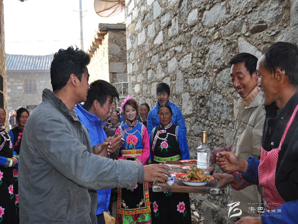 ■貴羌(瓊)人的婚禮一般在深夜舉行,吉時到,新娘的哥哥或弟弟或親老表(表兄弟)背上新娘,在送親隊伍的簇擁下由接親人員帶領(lǐng)趕往男家,途中接受對方擺設(shè)的三道迎門接路酒后,才到男方家門口等待婚拜禮節(jié),拜禮完畢就宵夜(吃夜宵)。第三天是匯親、回門、謝幫辦、還家具、撤盤等?;楹笊谝惶ィ瑧言泻笠啬锛艺{(diào)養(yǎng),直到分娩滿月才帶上嫁妝和孩子回婆家。