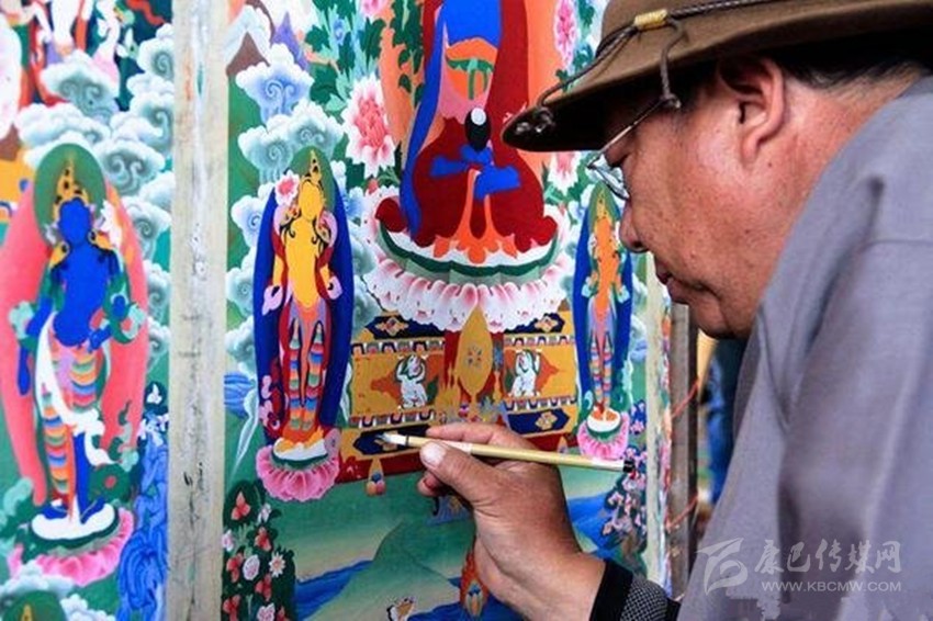 郎卡杰,出生地爐霍縣新都鎮(zhèn)朱巴村,是舉世聞名的唐卡畫師。 郎卡杰作品在線條構(gòu)圖、結(jié)構(gòu)布局、用色格調(diào)等各方面,無論是背景配置中意境神秘、形態(tài)自然,線條造型中剛?cè)嵯嗳荨⑷岷土鲿?,還是施色輕薄中色彩多樣、艷而不俗、沉著細(xì)膩、至今不失貴雅,甚至主題圖中的怒相張揚(yáng)或文相飄逸,均達(dá)到寫實(shí)與表意、動(dòng)物與靜物的完美結(jié)合。所以,郎卡杰大量的作品里流露著每個(gè)畫派的精髓,并且顯得渾然天成,聚示眾彩。更重要的是在此基礎(chǔ)上,要按十分嚴(yán)格的度量經(jīng)來作畫。