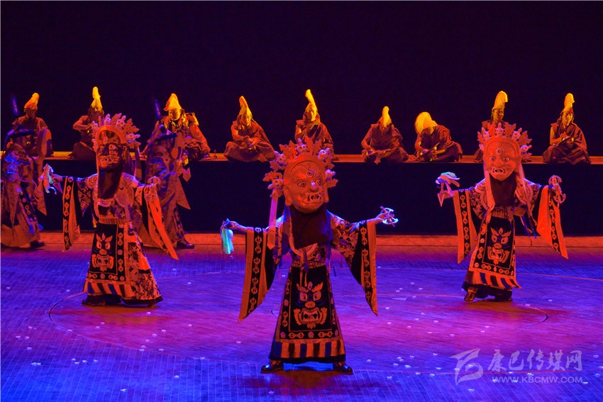 《亞丁?三怙主》歌舞劇不僅從藏族人民日常生產(chǎn)生活中提煉出很多舞蹈文化元素,還對宗教樂舞進行了合理的借鑒。舞劇中用了道孚嘛呢鍋莊、德格卓且、巴塘弦子、爐霍鍋莊、石渠真達鍋莊、丹巴鍋莊、稻城鍋莊等民間舞蹈等元素,加以深化再創(chuàng)作,把原有的民間舞蹈的步伐、舞姿進行夸張性的舞臺處理,并配以適當?shù)年犘危愿舆m應(yīng)劇場舞臺的表演;大膽創(chuàng)新引入寺廟樂舞,寺廟樂舞本是藏傳佛教寺廟在宗教節(jié)日表演的祈福性舞蹈,舞劇編創(chuàng)人員合理借用寺廟樂舞的音樂、步伐、面具等,用以表現(xiàn)藏族人民與自然抗爭,不懼不屈的精神面貌;用泥土筑墻本是藏族人民建造房屋時的一種建筑技藝,在民間演繹成為地方舞種,舞劇編創(chuàng)人員將筑墻的基本步伐和動作加以提煉,編創(chuàng)了一段約兩分鐘的打舞,用夸張的步伐和動作,配以鏗鏘有力的勞動號子,將豪氣灑脫的打墻舞氣氛推向高潮,以表達藏族人民的勤勞、勇敢與豪邁。州委黨校高級講師陶勇說:“《亞丁?三怙主》歌舞劇旨在講解香格里拉之魂,詮釋亞丁三怙主的本意,闡釋三座神山文化包含佛陀的核心教義。亞丁三怙主即仙乃日(觀世音菩薩)、央邁勇(文殊菩薩)、夏諾多吉(金剛手菩薩),它們分別象征慈悲、智慧、力量。這部歌舞劇是解讀藏民族精神文化、弘揚藏民族真善美勇、傳遞康巴文化真諦的民族歌舞劇。歌舞劇通過《序》、《慈明》、《慧明》、《力明》、《尾聲》五個篇章,充分展示藏族傳統(tǒng)文化中熱情、好客、善良、慈悲、勇敢、追求和諧的優(yōu)秀價值觀,將民族文化融入到社會主義核心價值觀,展現(xiàn)了當代人民群眾的幸福生活。同時對游客來講不僅豐富了亞丁文化,填補了游人僅僅觀賞雪山不知文化內(nèi)涵的短板,為以后推介甘孜州做了很好的示范?!?/span>
