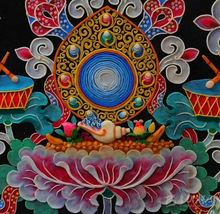 有傳說稱641年文成公主進藏,帶去一尊釋迦牟尼12歲等身像并將其供奉于拉薩的大昭寺,當?shù)厝罕娪盟钟妥龀苫ü┇I于佛前,以示崇敬之心,后各藏傳佛教寺院相繼使用,視為禮佛珍品,獻酥油花遂成為正月祈愿大法會的重要內(nèi)容。在發(fā)展過程中,酥油花的塑造方式、花色品種、內(nèi)容題材和工藝技巧都不斷發(fā)生著變化。