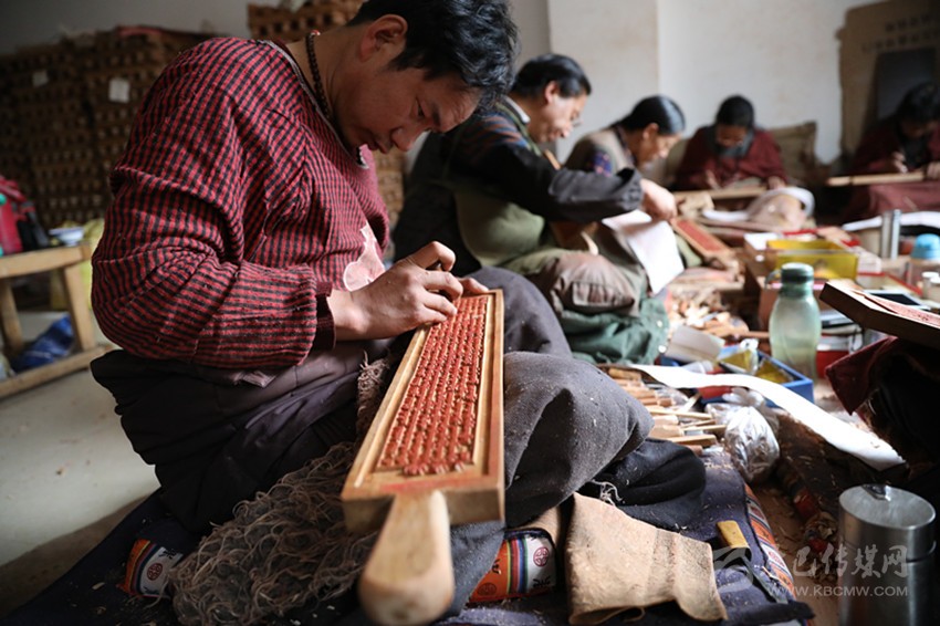 德格籍雕刻工匠格絨介紹說:“這是一項(xiàng)技術(shù)活,所有的文字都需要反刻在紅樺木上,我們大概六到七天能完成一塊經(jīng)板的雕刻。雕刻完成后還要經(jīng)過五次的校對,有錯的進(jìn)行再次???,最后在雕刻好的經(jīng)板上涂上酥油晾曬,一塊復(fù)刻經(jīng)板才算完成?!?/span>