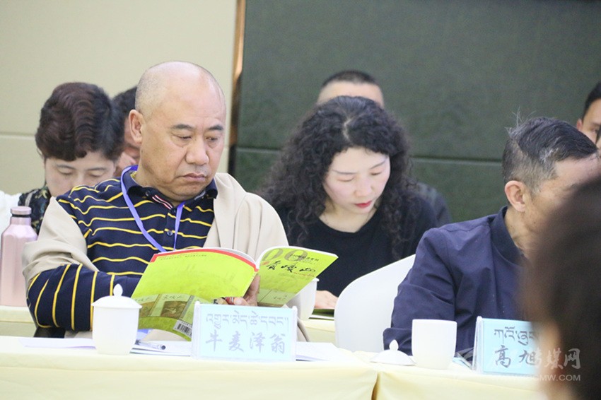 會議室正中的電子屏上,“貢嘎山期刊交流暨2019年藏漢文作家培訓(xùn)會”白色字體赫然入目。室內(nèi)最靠后的桌上,《貢嘎山》200期紀(jì)念??ⅰ敦暩律健返?99期等藏漢文讀物有序擺放,吸引了不少“粉絲”當(dāng)場品讀。