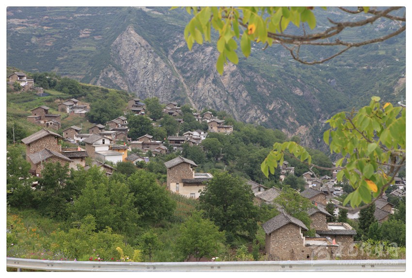 至此,似乎明了:在大渡河的東岸,在南北向布列的橫斷山脈(群)的夾金山系里,照常分布著眾多山的凹槽(山溝)——或深或淺,或?qū)捇蛘?,方向不定;而麥崩鄉(xiāng)所轄的村莊,幾乎都位于山溝兩側(cè)比較平緩的山坡臺地上。比如,昌昌村與對面山上的景點(diǎn)之間,就隔著一條大溝;昌昌村與下火地村之間,也隔著一條大溝;下火地村與景點(diǎn)所在的那座山,也隔著一條大溝了。