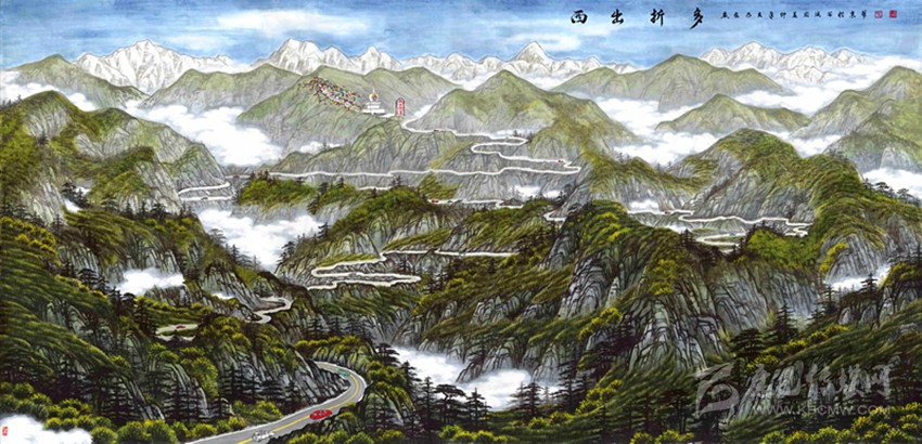 根據(jù)裴洪波所說(shuō),不難發(fā)現(xiàn),“康定新八景”不光是八幅惹眼的畫(huà)作,它們還有著深層次的含義。那么,這層深意是否能解釋“康定新八景”新在哪里?采訪繼續(xù)進(jìn)行著。