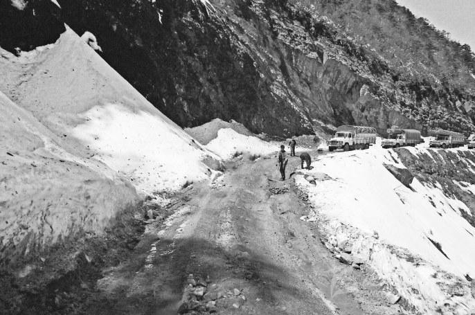 也就是在這一年,我們幾經(jīng)周折,終于聯(lián)系到了遠在北京的翟新莉女士。當年修筑二郞山公路時,翟女士的父親翟壽亭時任162團政委,既是指揮者,也是親歷者。聽過自我介紹,素未謀面、素昧平生的翟女士爽快答應(yīng),積極支持,不僅寄來《從豫皖蘇到康藏高原》一書,還發(fā)來了父親留下的一組珍貴照片。照片上,齊腰深的大雪讓人不寒而栗,四面透風的工棚使人倍感覺艱辛。心懷敬仰的閱讀中,一座座大山撲面而來,二郞山、折多山、雀兒山上,戰(zhàn)天斗地的故事驚天地泣鬼神。