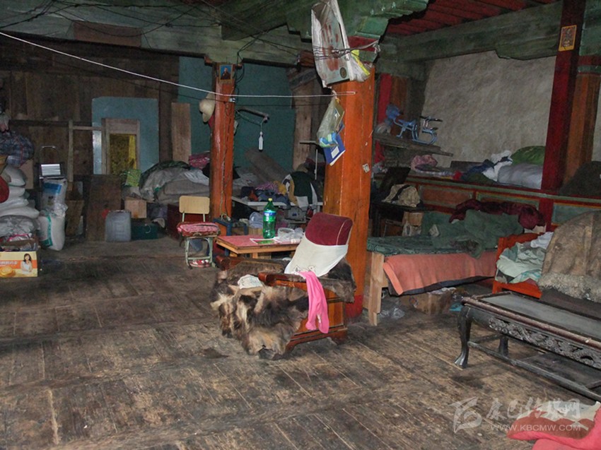 老屋鄰著折多河,靠著山腳修建,是典型的康定老式木板瓦房:一樓墻體石頭壘砌,混有土沙,住著冬暖夏涼,隔出兩間作為廚房和客廳。二樓整體木柱框架,木板墻與一樓緊密結(jié)合,是大家寢臥之地。現(xiàn)在康定這樣構(gòu)造的老屋已基本看不到了。