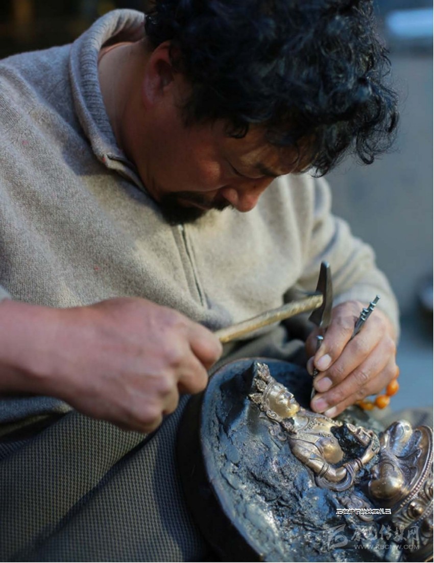 達(dá)瓦扎巴年輕、穩(wěn)重、活力,儼然一副小主人的模樣,用流利的漢語給我們介紹銅鑄技術(shù),也充當(dāng)我們和父親之間的翻譯。我們問達(dá)瓦扎巴麥宿銅鑄佛像與其他地區(qū)的最大差別在哪里,他滿是自豪回答:我們的鎏金銅技術(shù),可以說是獨(dú)家絕活,也是內(nèi)地近乎失傳的古法工藝。有故事為證:二十多年前,因?yàn)橹挥懈赣H一人會(huì)這門技術(shù),佛像產(chǎn)量很小。一位常年在印度做古董佛像投資生意的麥宿人回到老家,發(fā)現(xiàn)自己輾轉(zhuǎn)收來的“古董”竟然出自夏雷尼瑪之手。原來因?yàn)楣に嚬艠憔?,夏雷尼瑪制作的佛像被許多人冒充“古董”轉(zhuǎn)賣,竟然流到了印度。